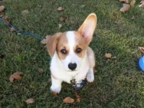 這隻狗子的黑耳朵立起來了,白耳朵還在猶豫立不立