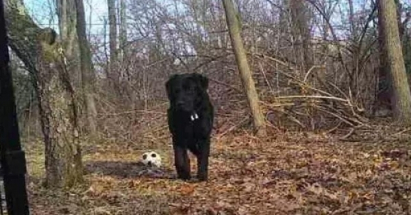 阿舍和同伴立即在樹林裡裝了一個監控攝像頭和一個陷阱,便於抓住這只拉布拉多。