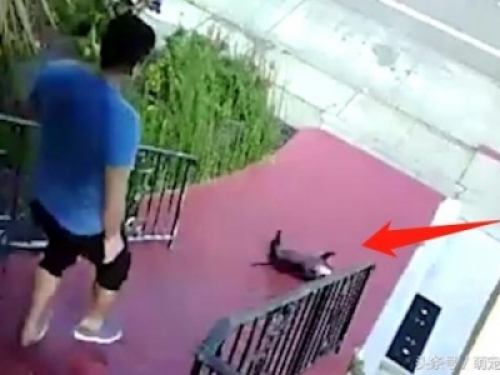 主人見狀,趕忙跑下去抱起這貨,不停安慰狗子,看這樣子,狗狗估計是嚇蒙了!