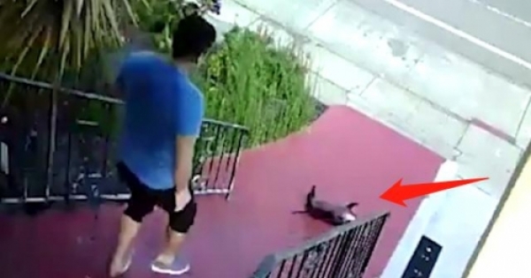 兩條狗狗屁顛屁顛就往上爬,第一條非常順利的爬了上來,後面一條眼看著還有最有一節台階,這貨還想偷個懶,準備直接跳上去,但是它卻忘記了自己的體型,結果直接腳滑滾了下去,只見一個圓柱體非常順暢的就下去了,還好短短的小腿讓自己停了下來,不然這貨要繞地球一圈呢!