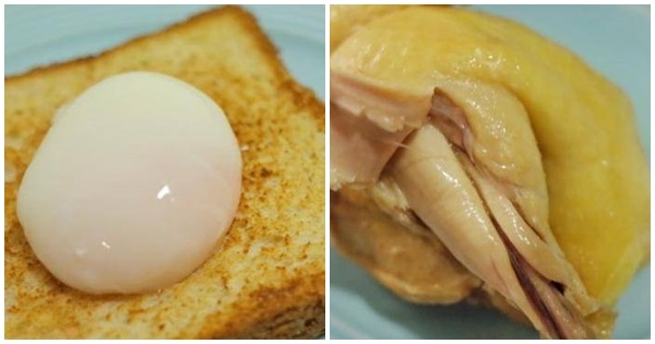 2. 之後可以把溫泉蛋放在烤土司、米飯、沙拉里(剝雞蛋的時候要小心,可以先用刀將蛋殼中間敲碎,然後對半掰開)。
