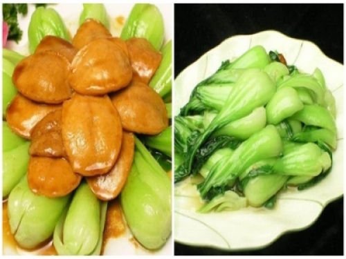 【材料】豬肉50克、雞腿50克、鮑魚800克、油菜心200克、味精2克、食鹽3克、植物油10克、味精2克