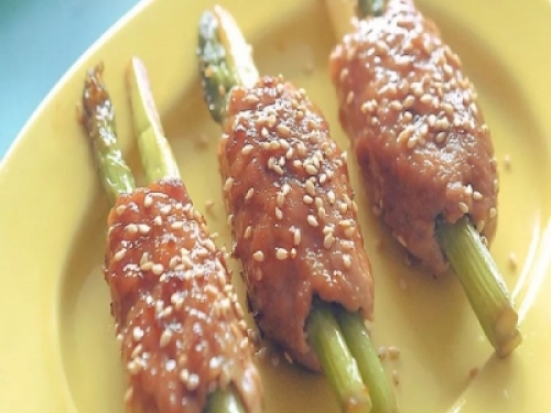 蘆筍10只支、肉沫300g(瘦7肥3)、蔥姜水15ml、澱粉15g、鹽、胡椒粉、澱粉水適量。