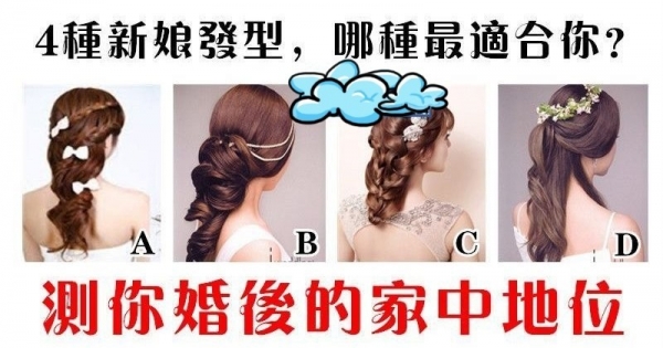 【髮型測驗】下列4種新娘髮型你認為哪種最適合你,測出你婚後的家中地位!