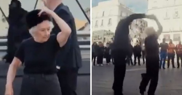 影片中一名街頭藝人正在邀請路人共舞,這時在圍觀群眾中有一名滿頭白髮的老奶奶,走出來自願當他的舞伴。一開始老奶奶跟著街頭藝人的步伐,看起來有些吃力,她還不時扶著腰,讓路人全為她捏把冷汗。沒想到,接下來的畫面卻讓所有人為之驚艷…