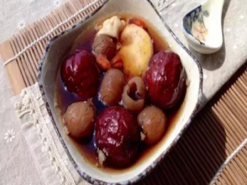 1.紅棗去核,和桂圓,薑片,枸杞一起用浸泡30分鐘。