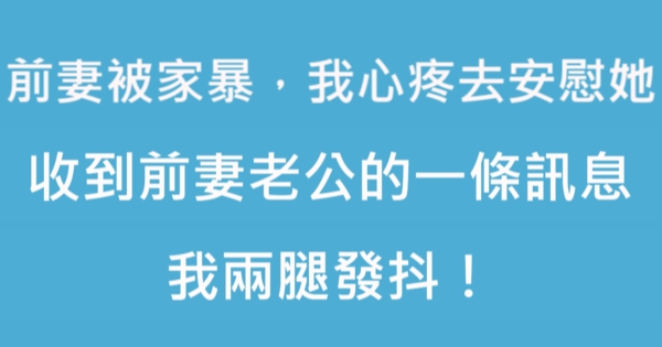 前妻被家暴,我心疼去安慰她,收到前妻老公的一條訊息,我兩腿發抖!