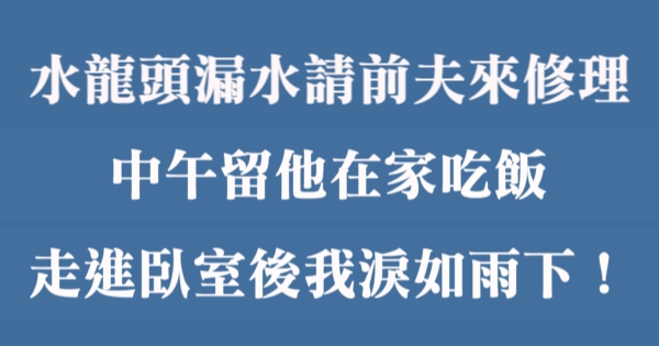 大家好,我是有錢人這麼想小編Pineapple!今天我們一起來看看「水龍頭漏水請前夫來修理,中午留他在家吃飯,走進臥室後我淚如雨下!」!背後到底藏著什麼秘密吧!