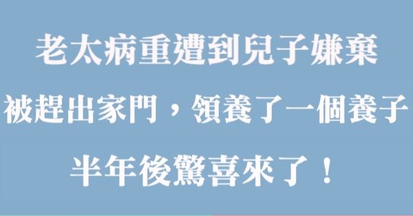 老太病重遭到兒子嫌棄,被趕出家門,領養了一個養子,半年後驚喜來了!
