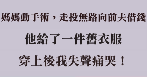 媽媽動手術,走投無路向前夫借錢,他給了一件舊衣服,穿上後我失聲痛哭!