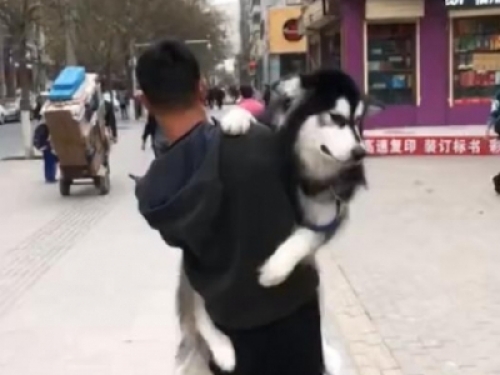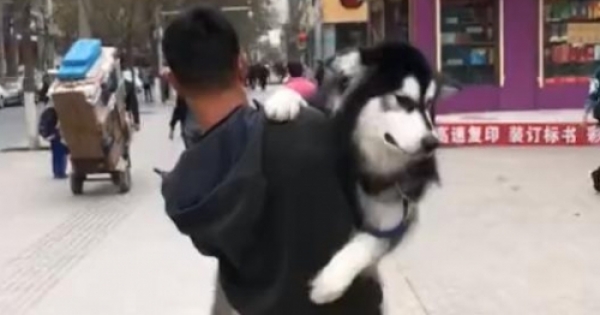 在街上看到一個大哥抱著阿拉斯加,覺得奇怪上前詢問原因,大家忍不住笑噴了:真是辛苦這位大哥了!!