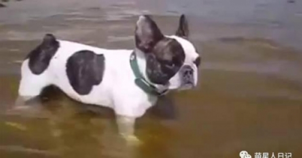 主人帶法鬥去海邊游泳,狗狗誤以為主人溺水,接下來的這一幕讓網友們直呼:太有愛啦!