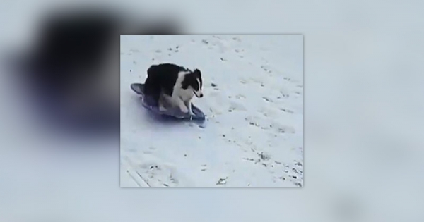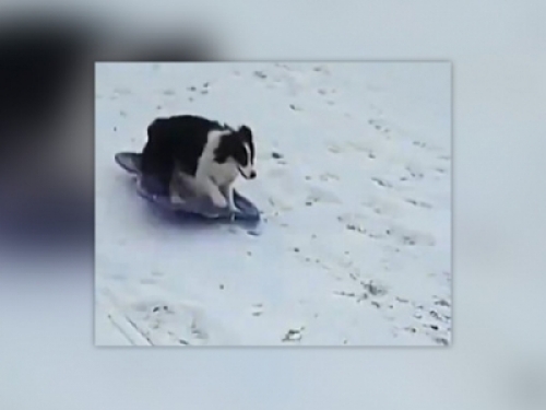 畫面中是下過雪以後,狗狗帶上它的滑板,從坡底往坡上叼,主人想幫忙?對不起,本汪暫時不需要!緊接著,邊牧像是有練過一樣,熟練地踩上滑雪板,一推一按,就給他滑下去了!中間還非常機智地調整方向,人類都沒這麼強!