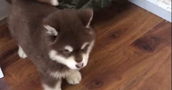 剛準備熱情的打個招呼呢,誰知拉布拉多直接就是一爪子,把雪橇犬給呼到了牆上,好委屈!這一巴掌都把狗狗給拍暈了
