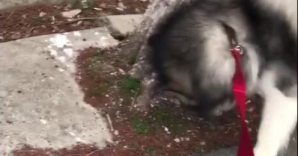 別看這雪橇犬體型這麼大了,其實這貨才一歲,不過這狗子卻還不會抬腿上廁所呢!最近才在學習怎麼做好一條公狗,主人帶著狗狗出門溜達,狗子邊走邊聞