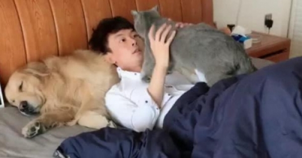 不願起床卻躲在房裡對狗狗貓咪做這事,網友當時看見這幕就笑出了聲,以前咋沒發現男友還有這麼二的一面呢?