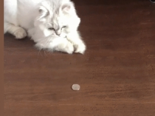 鏟屎官:主子,你能接得住嗎?這硬幣滾得可是快。