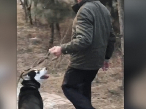 這二哈一看就是純種二哈,這拉著伯伯就滿街跑啊,不跑了吧它就往上跳,一隻想要和伯伯比一下誰跳得高,誰跳的遠。