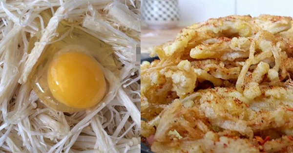 女兒把雞蛋打在金針菇上扔進油鍋,我傻眼了,但是出鍋後我一個人全吃光了!