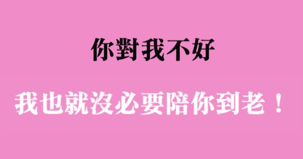 各位讀者安安阿~~我是有錢人這麼想小編Ant!今天要來說說關於「你對我不好,我也就沒必要陪你到老!」,不知道大家有沒有興趣呢!一起來看看吧!
