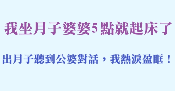 我坐月子婆婆5點就起床了,出月子後聽到公婆對話,我熱淚盈眶!