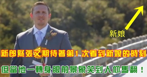 新郎緊張又期待著「第1次看到新娘」的時刻,但當他一轉身眼前景象笑到人仰馬翻!