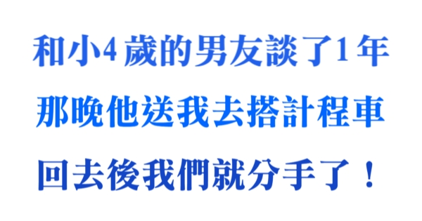 和小4歲的男友談了1年,那晚他送我去搭計程車,回去後我們就分手了!