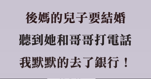 後媽的兒子要結婚,聽到她和哥哥打電話後,我默默的去了銀行!