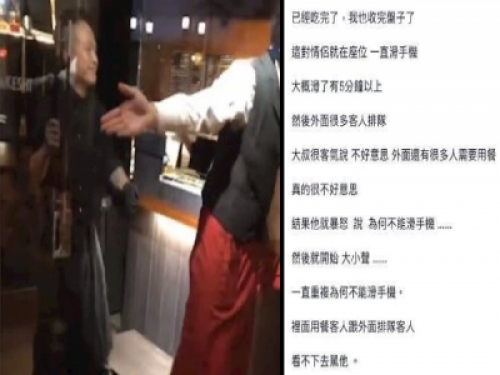 說他『花錢吃飯為什麼不能玩手機?』