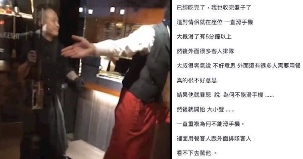 不顧店家排隊人龍,吃完後仍佔位滑手機,無奈店家勸說不成反被大罵!