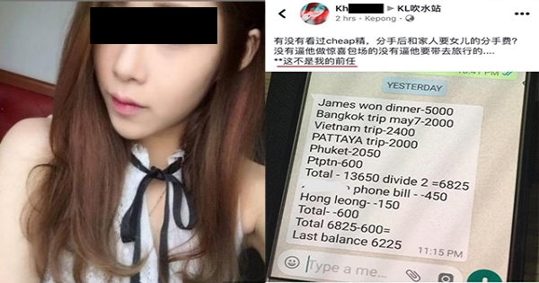 馬來西亞最近有網友在臉書爆料,有個渣男都跟女友分手了還要索討分手費!