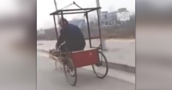 網友以為老爺子是在用牛或者馬拉車呢,沒想到到前面一看的時候,居然是一隻哈士奇呀,經過攀談,老大爺表示,這只哈士奇是別人送他的,他發現二哈的力氣很大,用來拉車再合適不過了,雖然二哈是一隻狗,但是它也能夠拉著老大爺出門。