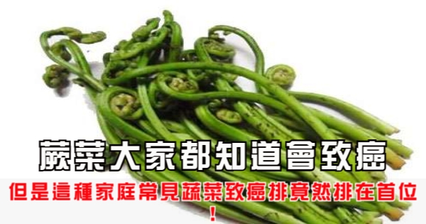 俗話說得好!身體健康者常年輕;無負於人者常富有。大家好,我是Ant小編!讓我們一起來看看今天要討論的蕨菜大家都知道會致癌,但是這種家庭常見蔬菜致癌排竟然排在首位!吧!