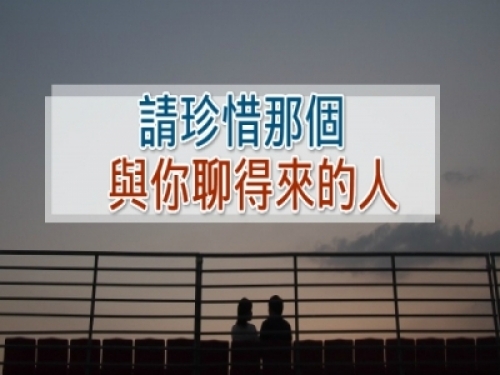 曾經在節目上,有個主持人問來賓:「你中意的伴侶類型是什麼樣的?」來賓說:「聊得來的人就很好!」身邊有個聊得來的人,每當我們遇到點高興的事,就會迫不及待地和他們分享;遇到點傷心的事,也會趕緊跟他們傾訴一番,我們絕對會很慶幸,自己此生還有隨時能陪自己說話的人!