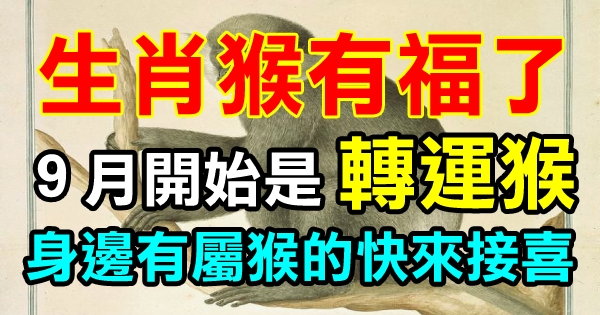 生肖猴有福了!9月開始是「轉運猴」,身邊有屬猴的快來接喜!