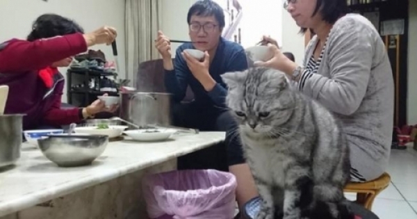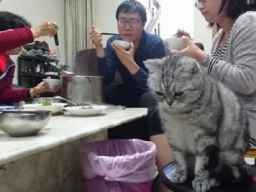 網友家養了一隻貓,平時這傢伙就有點痴痴的,整天腦子裡就想著吃東西。每次給它餵完之後,這貓總像是吃不飽一樣,總想著去跟網友再要點。而且有時候為了點吃的,這貓還會做出一些令人搞笑的事情。有個晚上,網友一大家子坐在那裡吃飯,可能是晚上吃的都是些蔬菜,而這個時候貓咪看到桌上沒有牠喜歡吃的魚乾和肉,一臉生氣的樣子坐在一旁,讓人看了真的忍不住笑噴了!