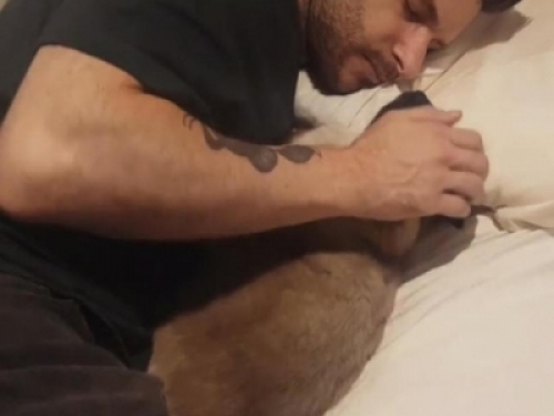 可是最近一段時間,網友發現不對勁,男友好像跟這貓越來越親熱了,有時候還會逗著這貓玩。甚至在前幾天提前下班時,一推開房門後,看到這一幕特暖心的一幕。呵,男人果然是嘴上一套,心裡一套。他竟然摟著貓咪一起睡覺,還不停的摸著貓,就跟哄孩子睡覺一樣!