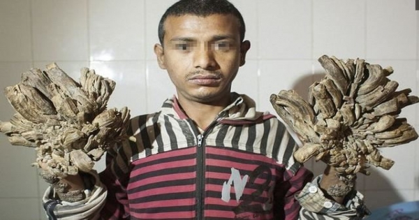 這種怪病是由人乳..頭瘤病毒所致。由於天生的基因問題,免疫系統某種功能缺失,任乳頭瘤病毒可以侵入他體內,改變細胞形成機制,導致皮膚上長出了大量多餘的物質。 樹人病情可經由服用人工合成的維他命A改善,維他命A已被證實可以有效地遏止因乳突病毒而生出的疣狀物。