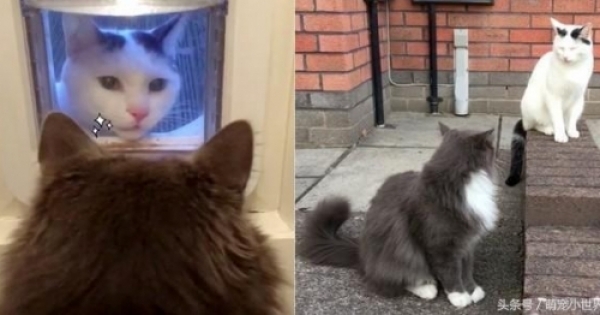 鄰居的貓每天都會跑來我家,隔著門對我家的貓露出這個謎之微笑!網友笑說:成全牠吧XD