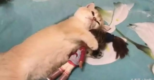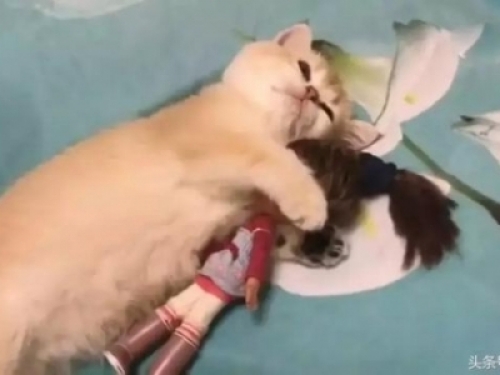 這天小貓咪抱著芭比娃娃,輕輕的拍著娃娃的腦袋哄對方睡覺。而且表示娃娃不睡它也不睡。鏟屎官心酸的在旁邊吃乾醋,最後還是給貓咪和芭比娃娃蓋了被子,當心小貓咪感冒。