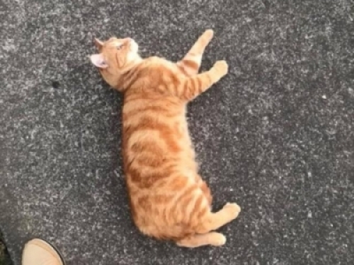 男子早上出門上班的時候,剛走到樓下就發現有隻黃色的流浪貓在那裡溜達著,雖然網友比較喜歡貓咪,平時遇到都會上去摸兩下的,但是今天實在來不及,就打算直接離開了。可是網友走了沒多久,就發現這貓咪竟然也追上了自己,甚至超過了他,接著竟然筆直的倒在網友的面前不停的扭來扭去,看樣子這貨是碰瓷的啊!網友覺得它有點可愛,就摸了摸它,可誰知道這貓好像被摸上癮了,不停的要求網友摸,如果鬆開的話,貓咪就會不停的叫著,還咬著網友的褲腳不讓走!