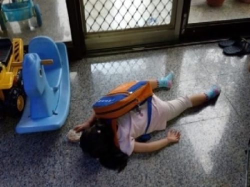 上學真的好累! 女兒回到家「秒沒力躺平」睡過去 爸爸無奈表示:「才第一天耶!」