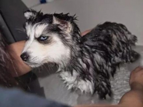我們都知道狗狗也有很多不喜歡的事,比如說洗澡,很多狗狗就很抗拒洗澡,和要他們命一樣!看這個眼神就知道二哈打心裡是拒絕的~完事又沒轍!只能用眼神詛咒主人了~