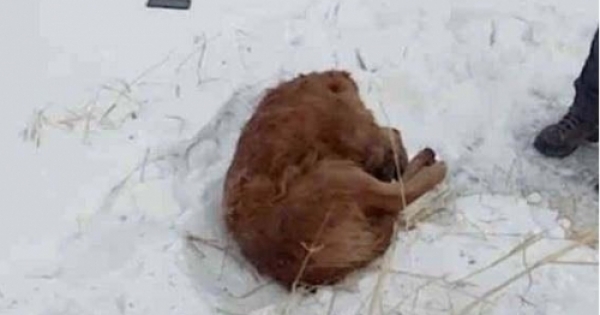 鏟屎官趕緊出門去找金毛,本來狗狗年紀就大了走不了太遠!果然走了一圈在家附近的一個小山坡上找到了金毛的身影!金毛蜷縮著身體窩在一個雪坑里面,當鏟屎官走近的時候去摸金毛髮現他已經沒有了呼吸!