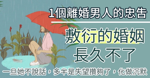 "一個離婚男人的忠告:敷衍的婚姻,長久不了 "