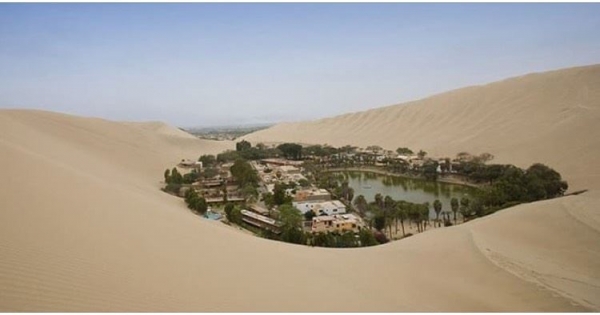 ▼5. 地球上最干旱地區之一的村落Huacachina,一個包含樹木,商店,旅館還有綠洲的村落。