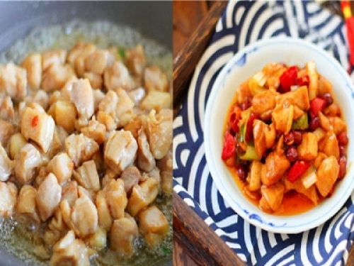 如何讓雞腿肉做的雞丁更多汁,雞丁一定要先醃製入味,用澱粉上漿,鎖住水分,炒之前加上少許油拌勻,這樣才能使得雞塊更嫩滑,而且也不容粘連。