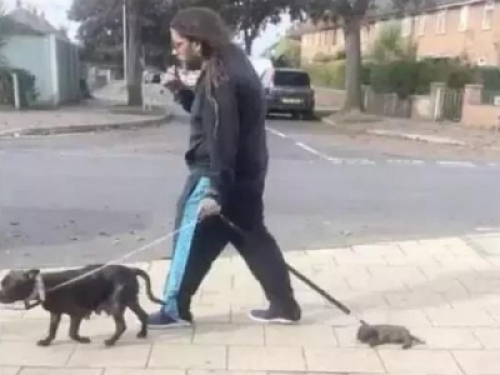 當有路人看到之後上前提醒,他的態度還十分的惡劣!讓人滾開,隨後依舊我行我素的花樣遛狗!