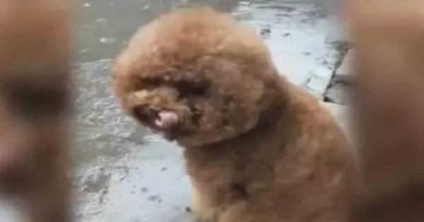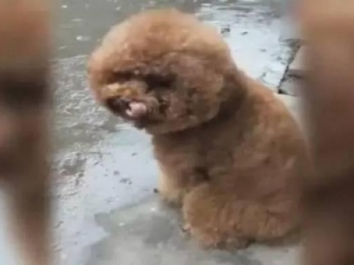在主人叫了很多次之後,狗狗終於回過頭來,眼眶都濕成一團,不知道是眼淚還是雨水,看得人真是又心疼又好笑。
