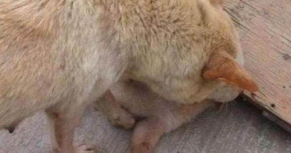 網友把地上的木頭撿了起來,發現三隻小狗都被壓在了下面,讓狗媽媽發出了淒厲的叫聲